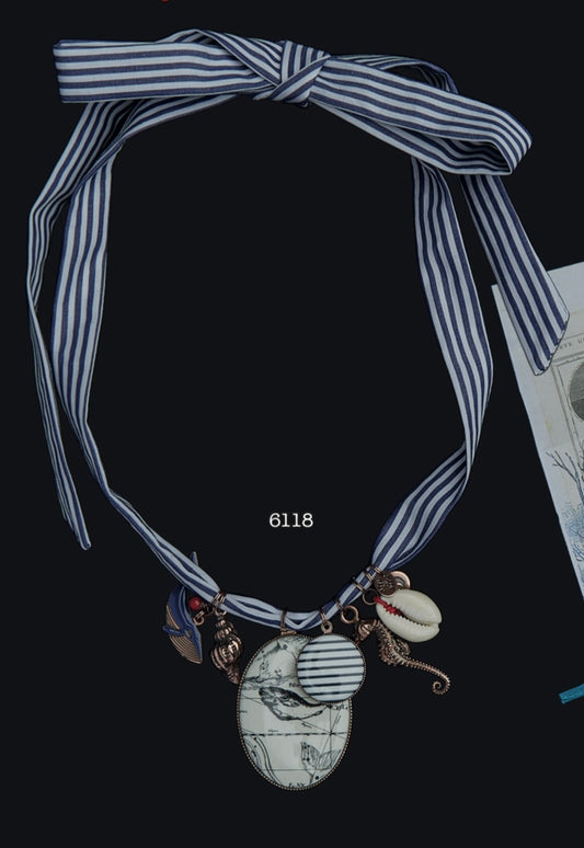 Aggiungi al carrello6118 NASTRO SETA RIGHE AZZURRE CON CIONDOLI