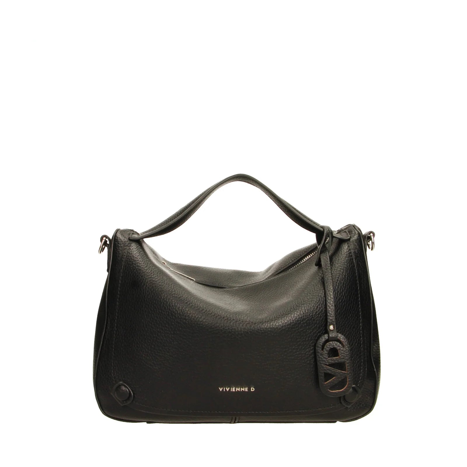 Borsa in ecopelle martellata, con due tasche interne di cui una con zip, logo VIVIENNE D finitura argentata